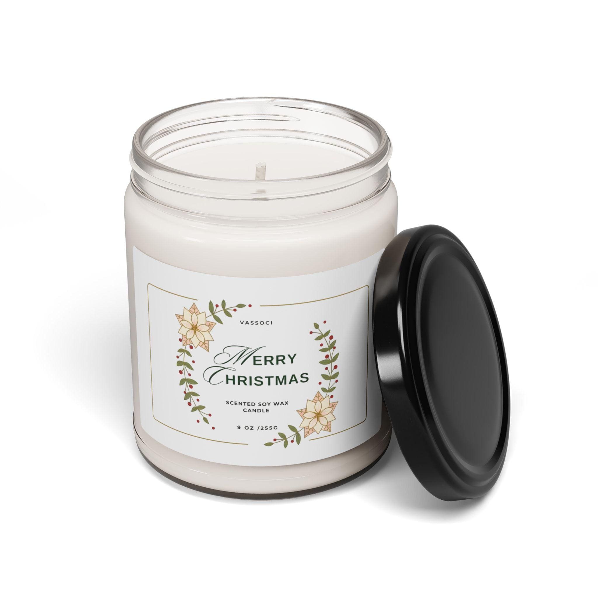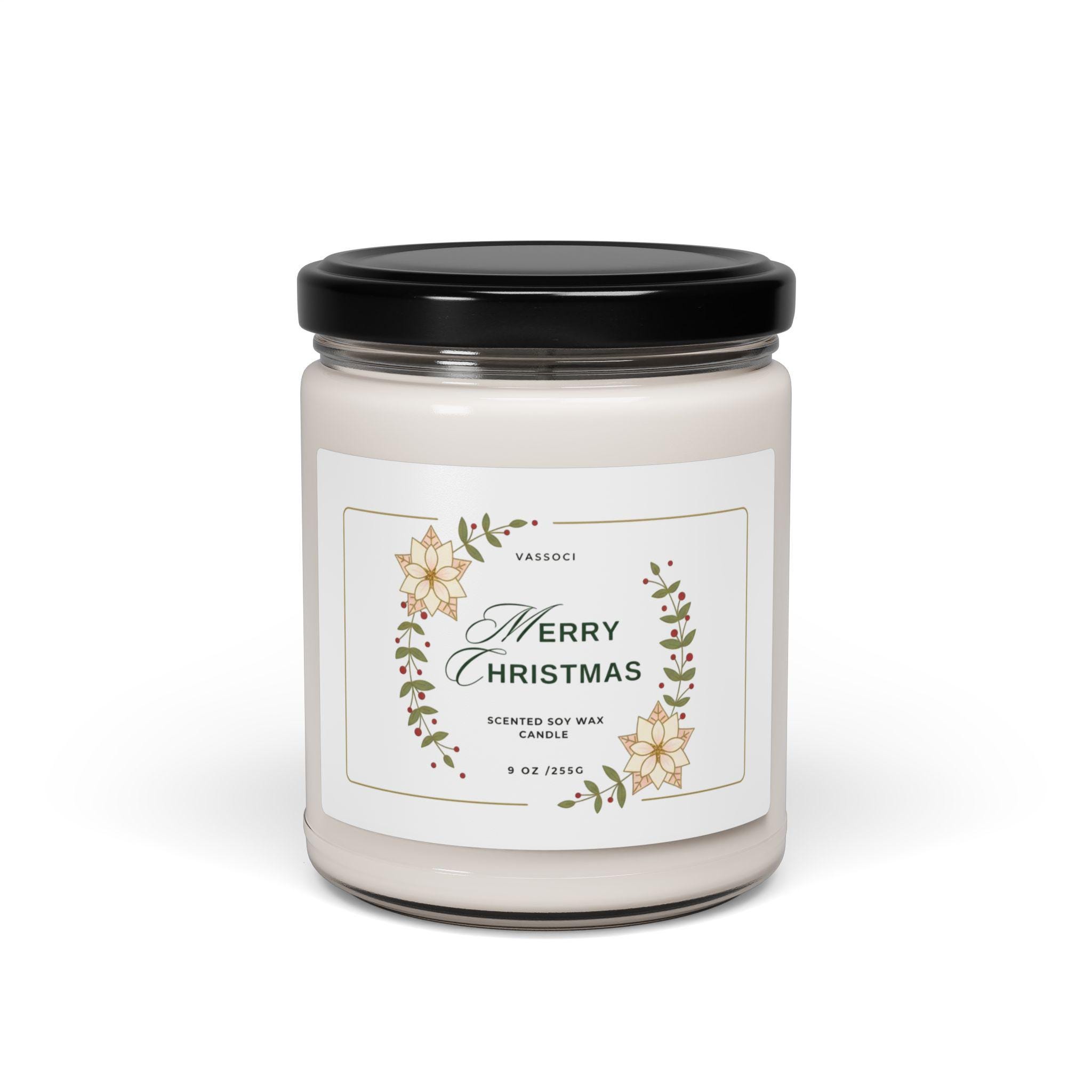Holiday Christmas Scented Soy Candle, 9oz - Christmas Candle, Christmas Gift, Poinsettia Decoration, Gift Friend, Artisan Winter Crown Wedding