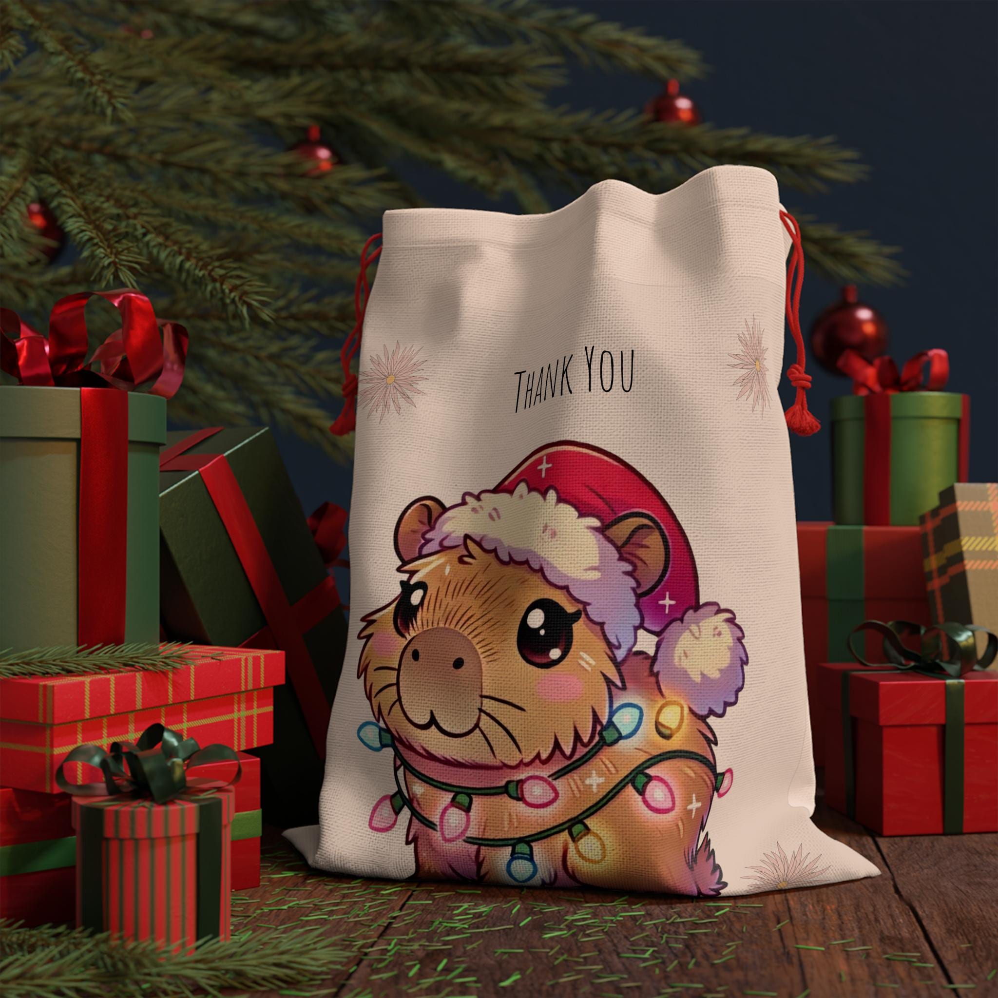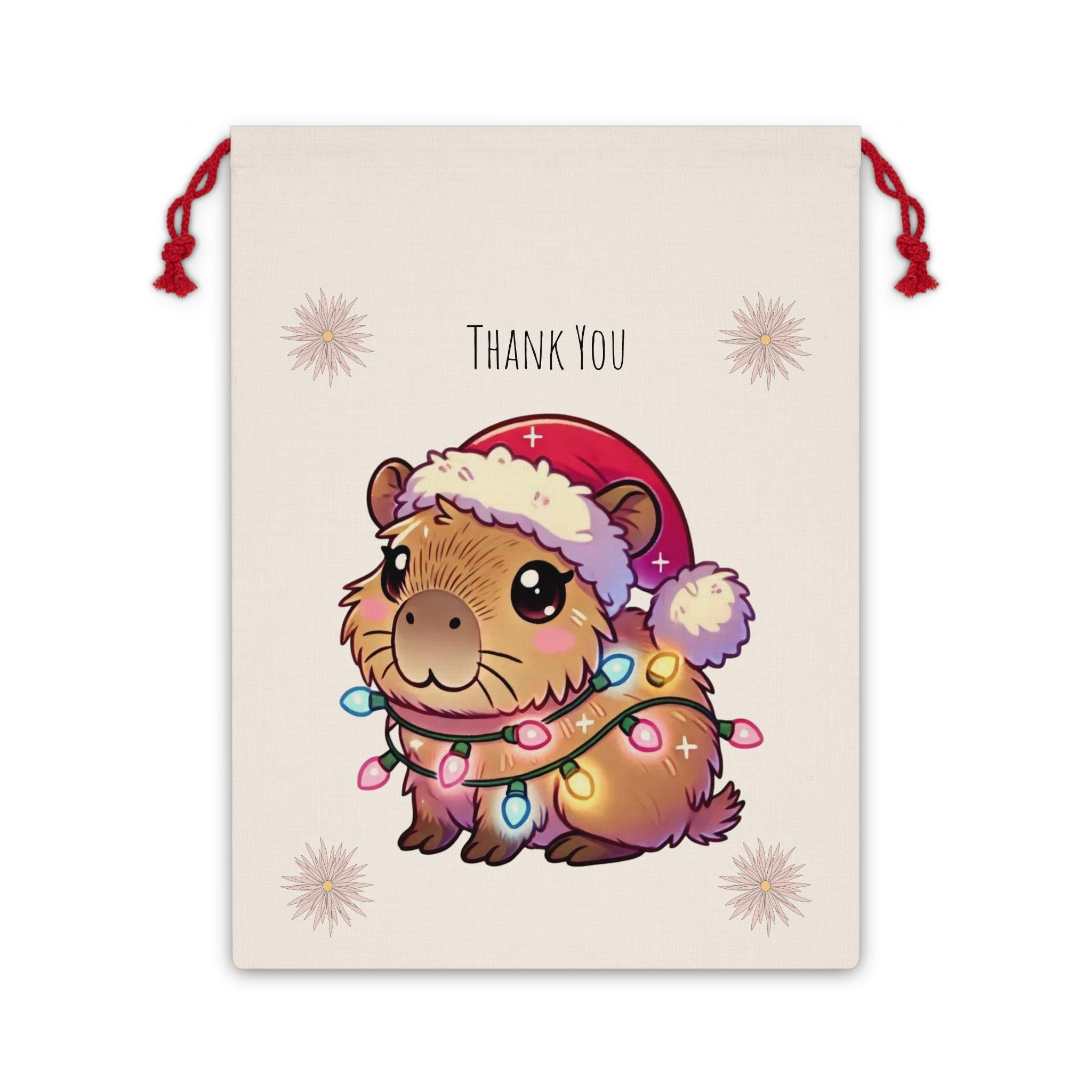 Christmas Capybara Thank You Gift Bag | Holiday Drawstring Bag