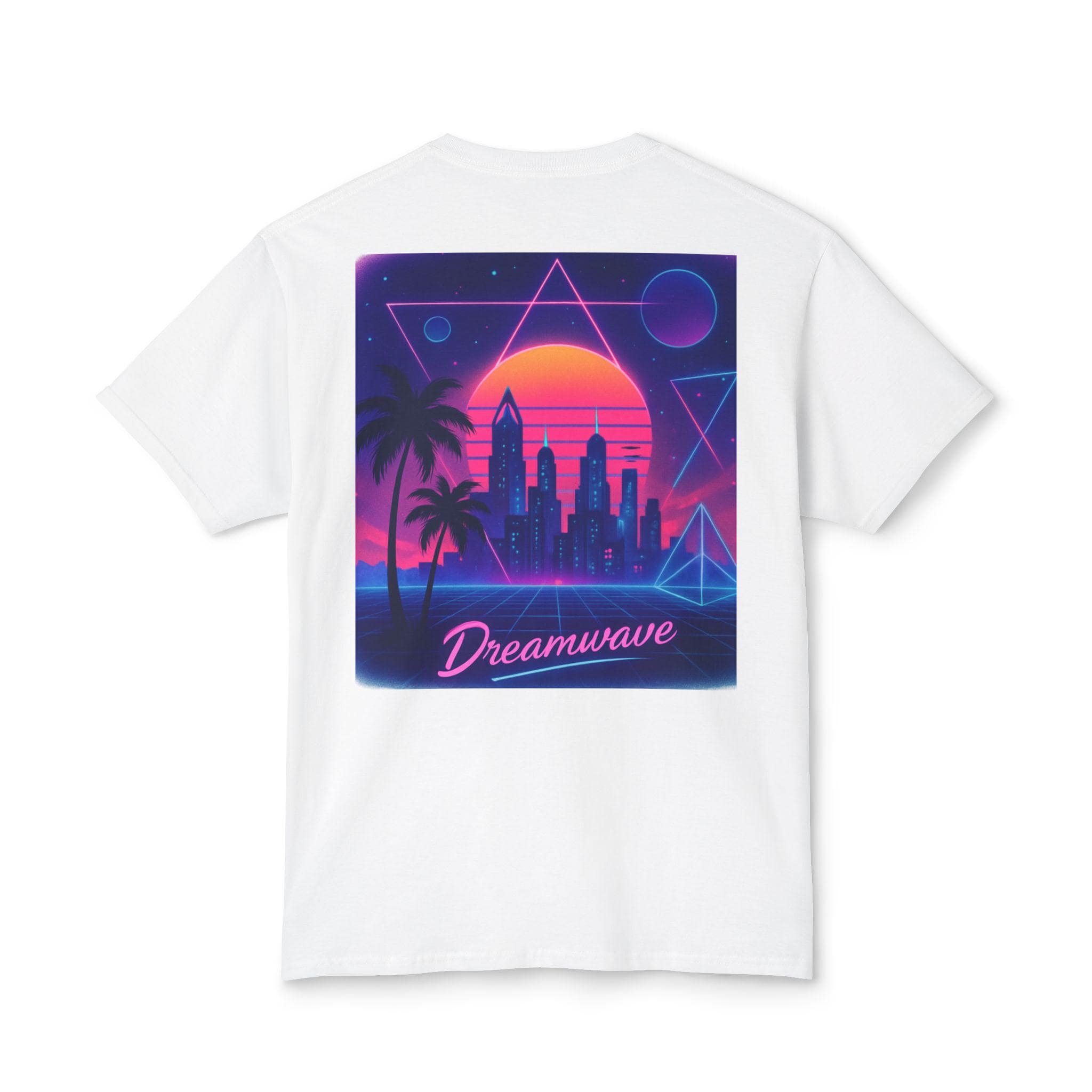 A lightweight classic-fit tee that brings neon-soaked, retro-futurist nights to your everyday wardrobe. Soft, USA-grown cotton and reinforced stitching make this shirt reliable for long days and late-night drives. The back print features a vaporwave cityscape—sunset gradients, silhouetted palms, and geometric accents—so the shirt reads like a cinematic moment whenever you move. Wear it while chasing twilight, layering for cool evenings, or when you want a quietly bold statement without shouting. Breathable, slightly drapey fabric keeps the silhouette relaxed and effortless.