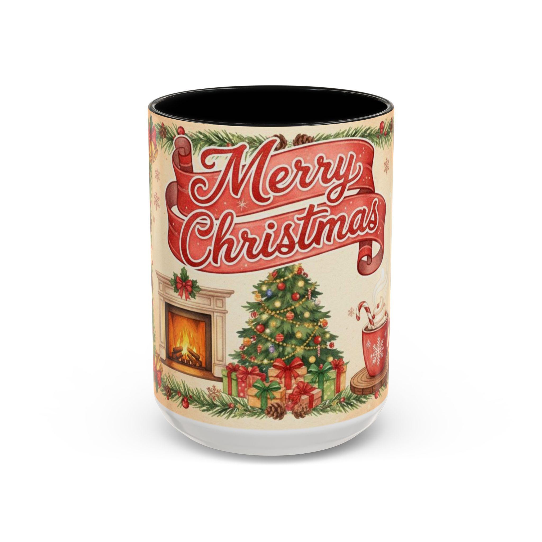 Merry Christmas Retro Holiday Scene Mug | Accent Coffee Mug 11oz 15oz