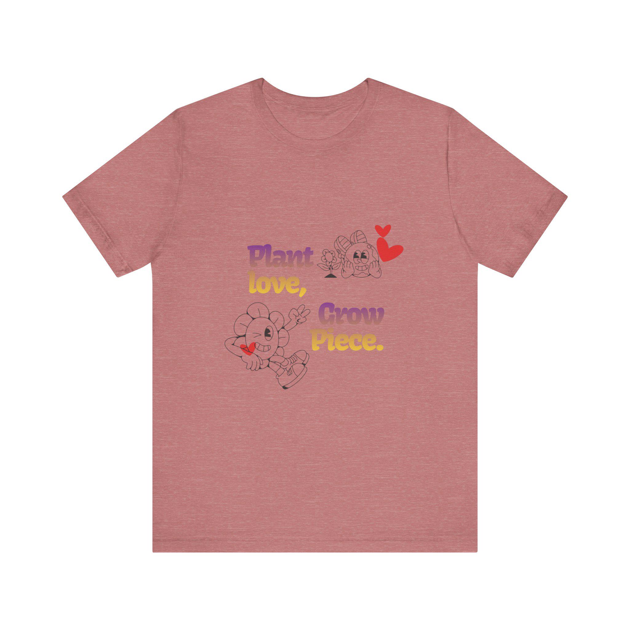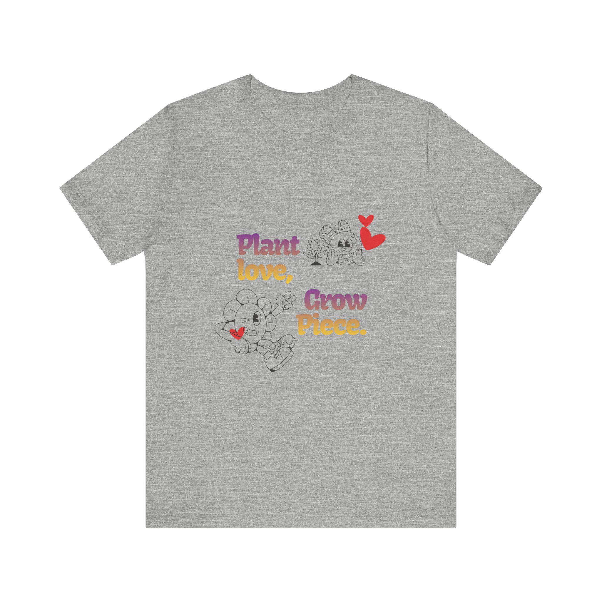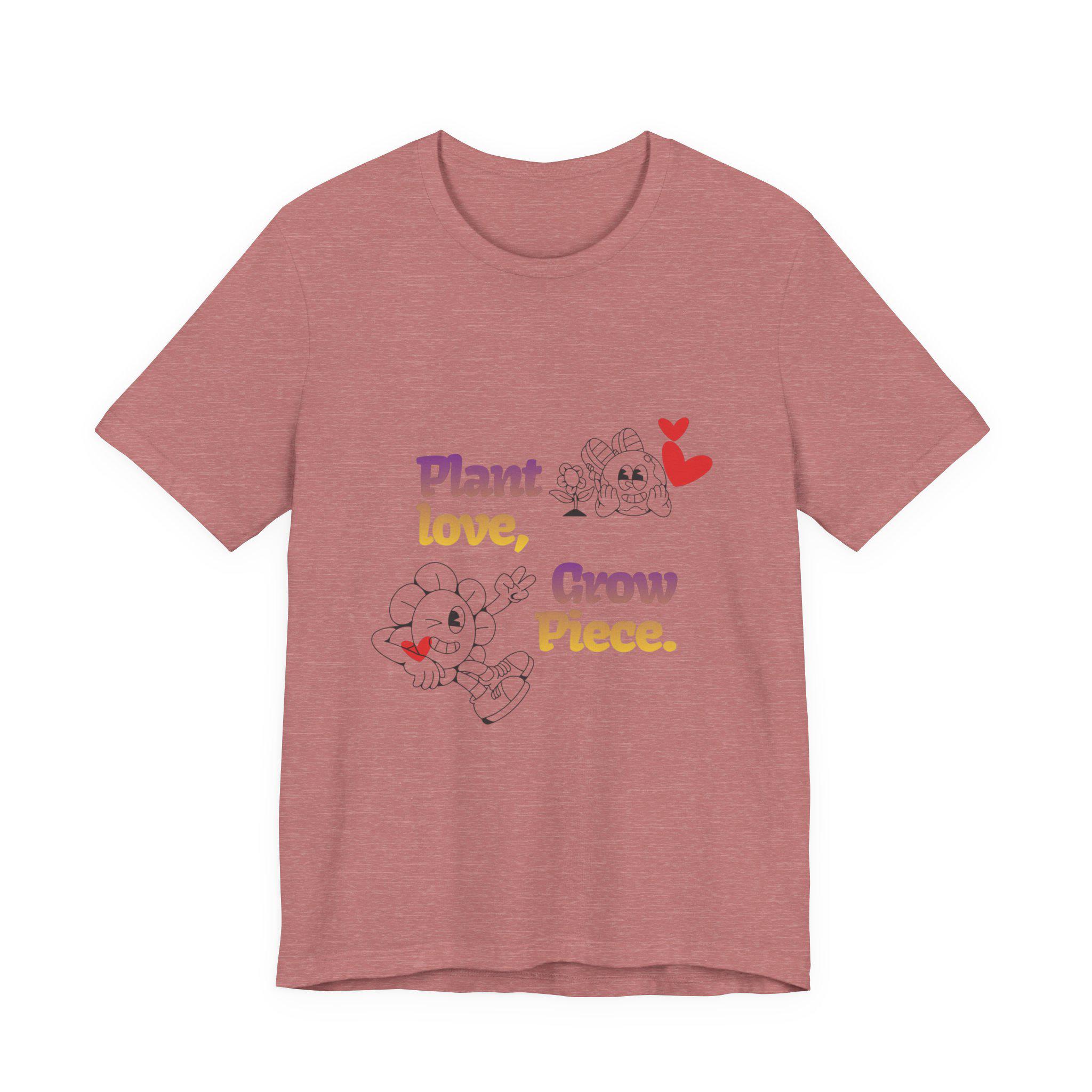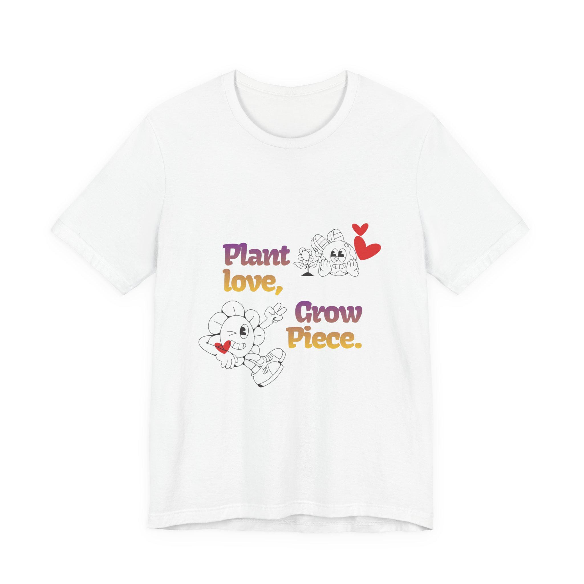 Soft, breathable cotton meets quiet optimism. This lightweight jersey tee carries a gentle, hand-drawn plant illustration and the warm message “Plant love, grow peace.” It sits close to the body without feeling tight, so the design reads clearly whether you're watering succulents on the balcony or meeting friends for coffee. The crew neckline and tidy side seams keep the silhouette neat while shoulder tape ensures the shirt stays shaped through repeat wear. Wear it on slow mornings, in community gardens, or paired with a cozy cardigan for low-key activism — a calm reminder to tend to what matters.