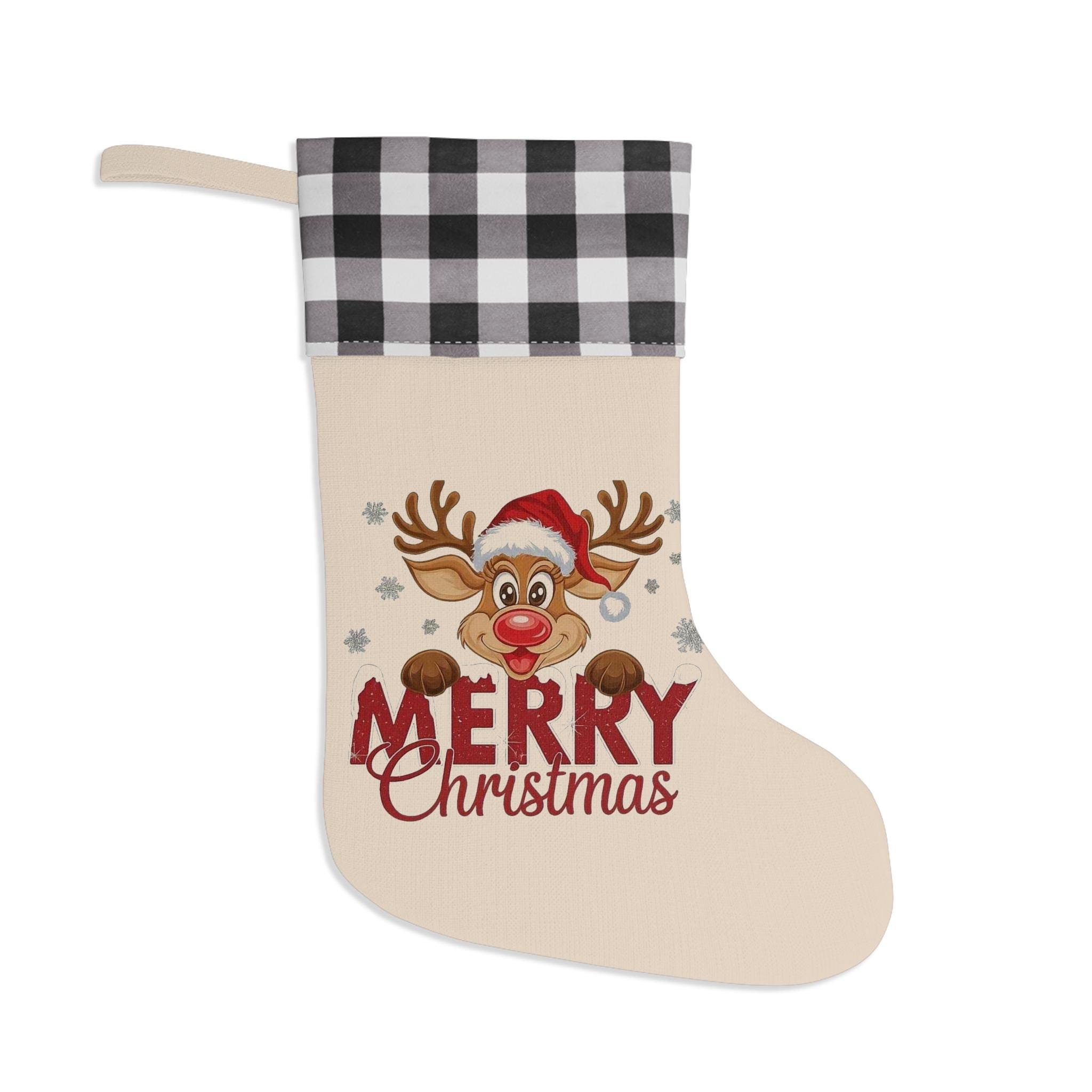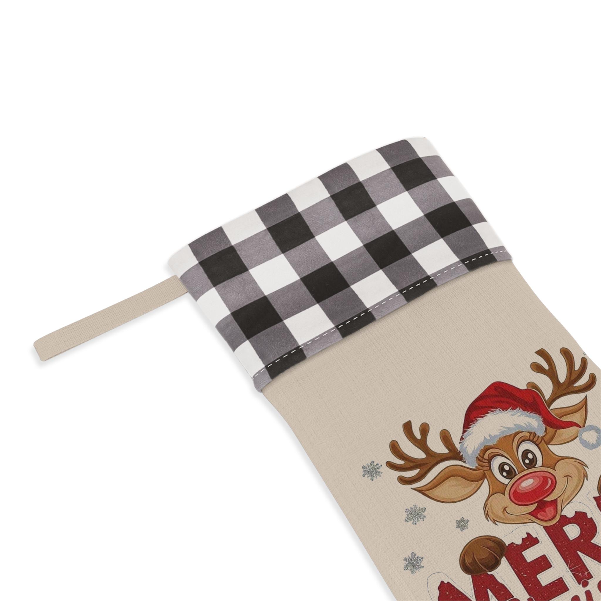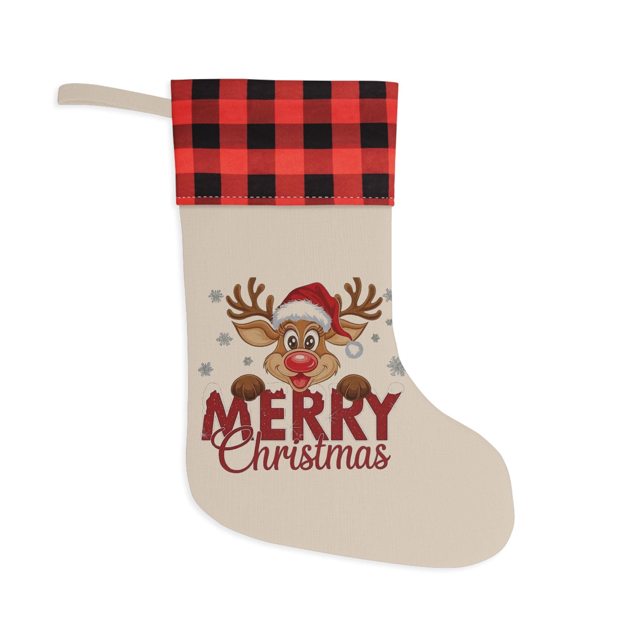 Reindeer Merry Christmas Stocking | Buffalo Check Cuff Christmas Stocking
