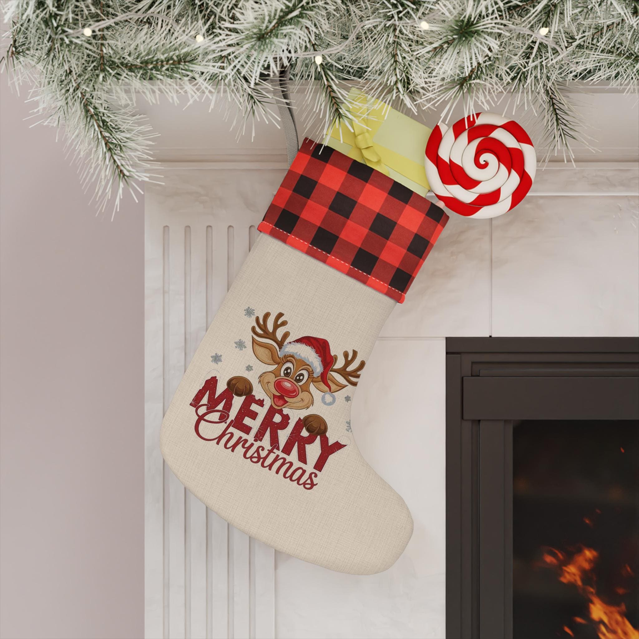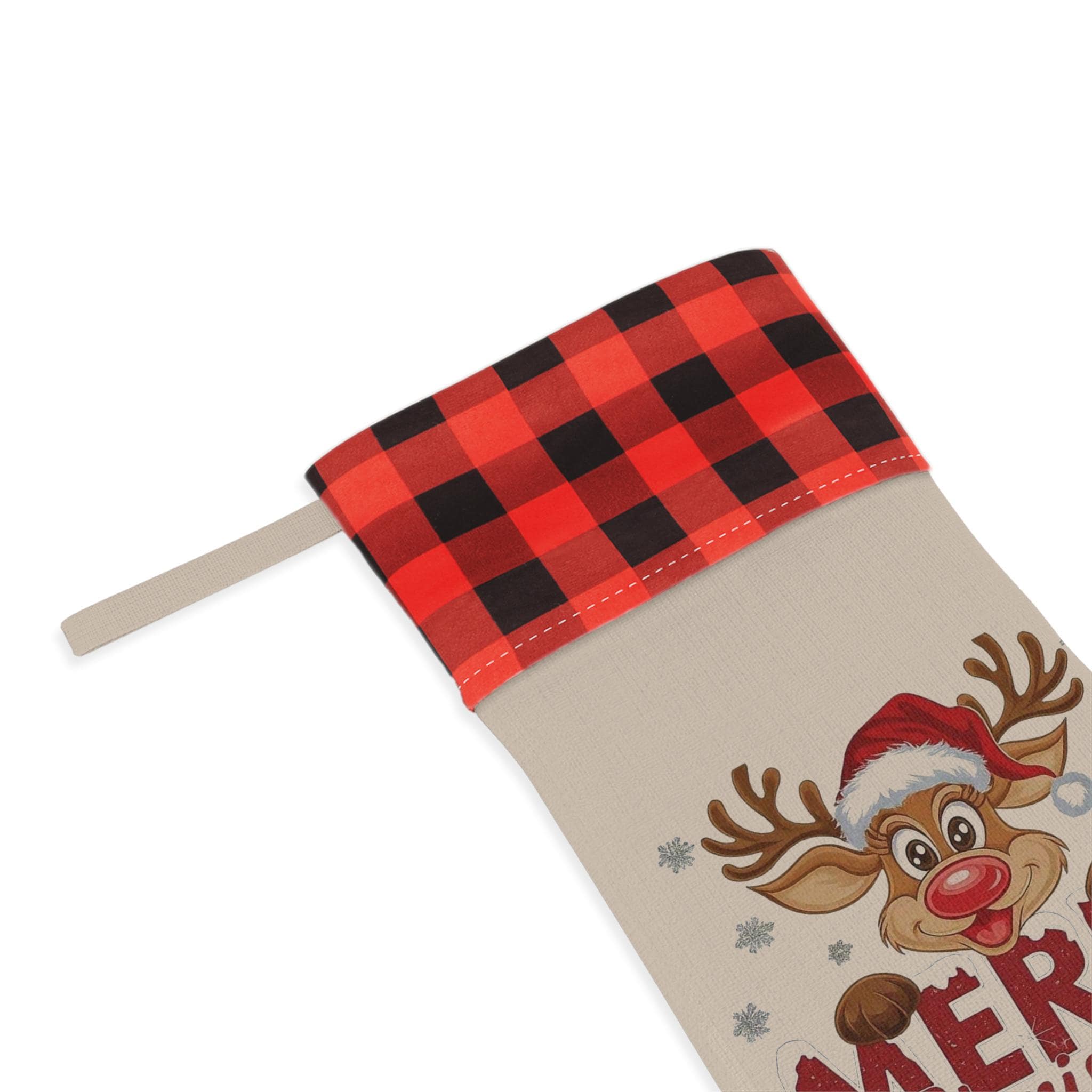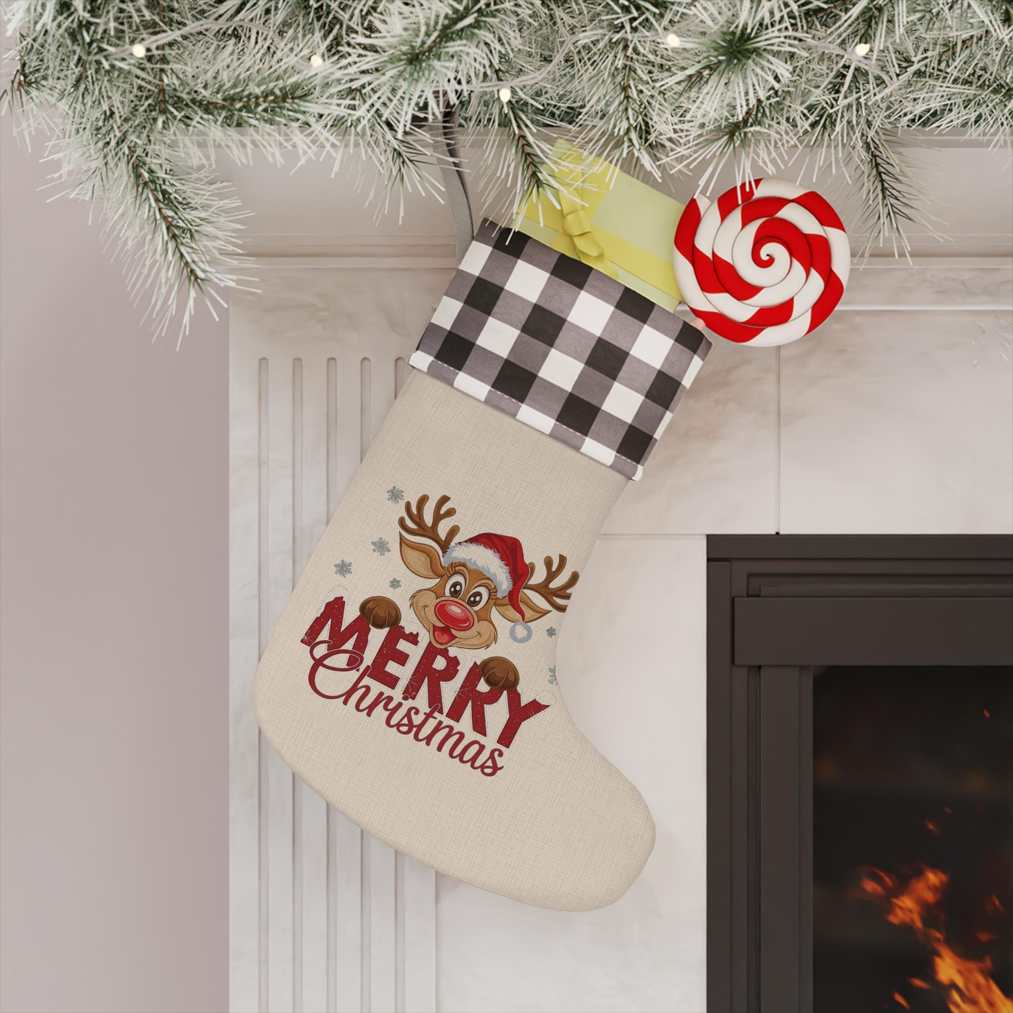 Reindeer Merry Christmas Stocking | Buffalo Check Cuff Christmas Stocking