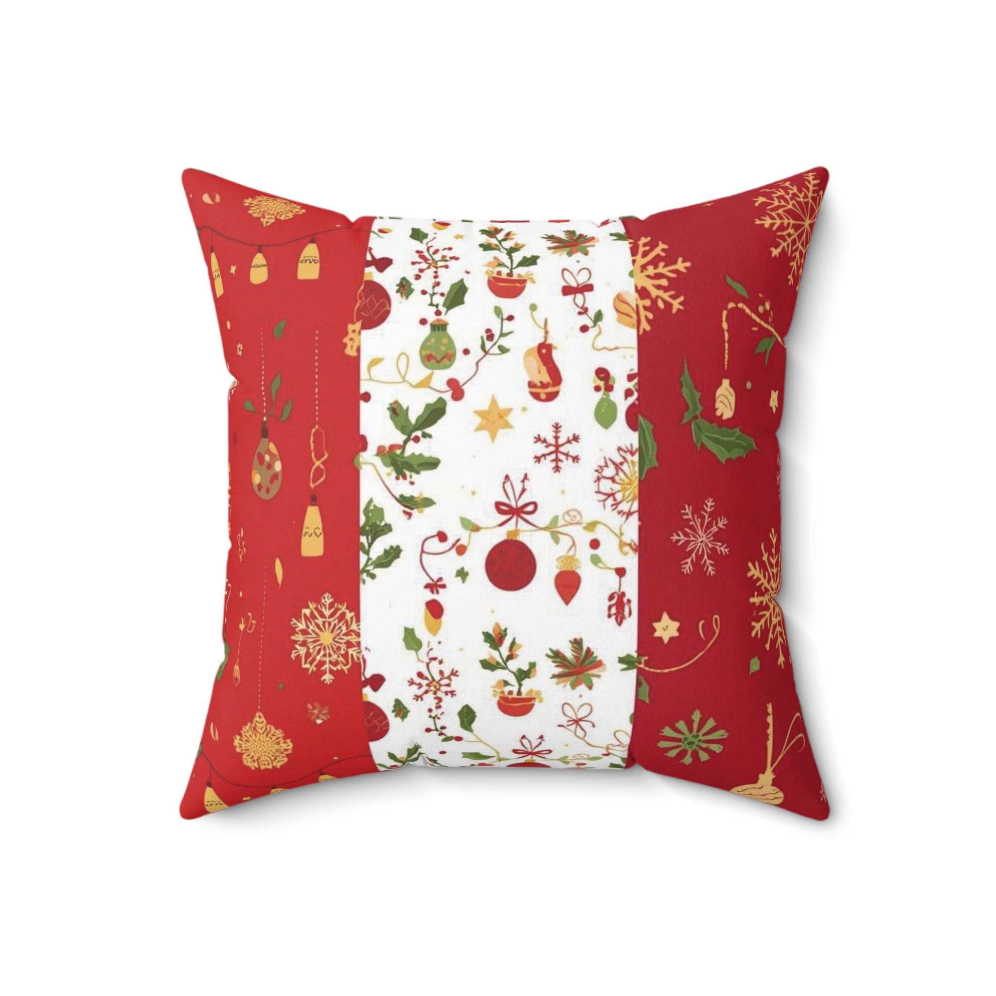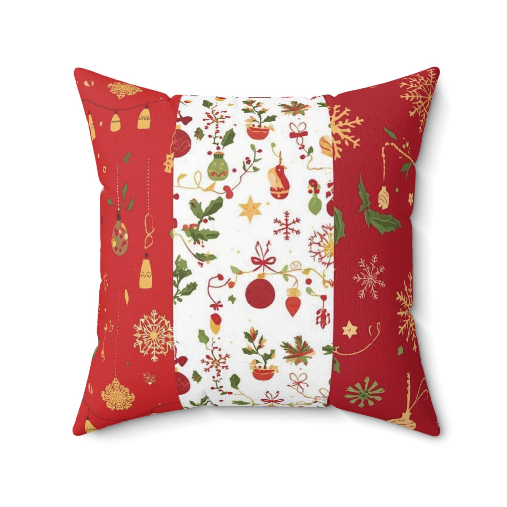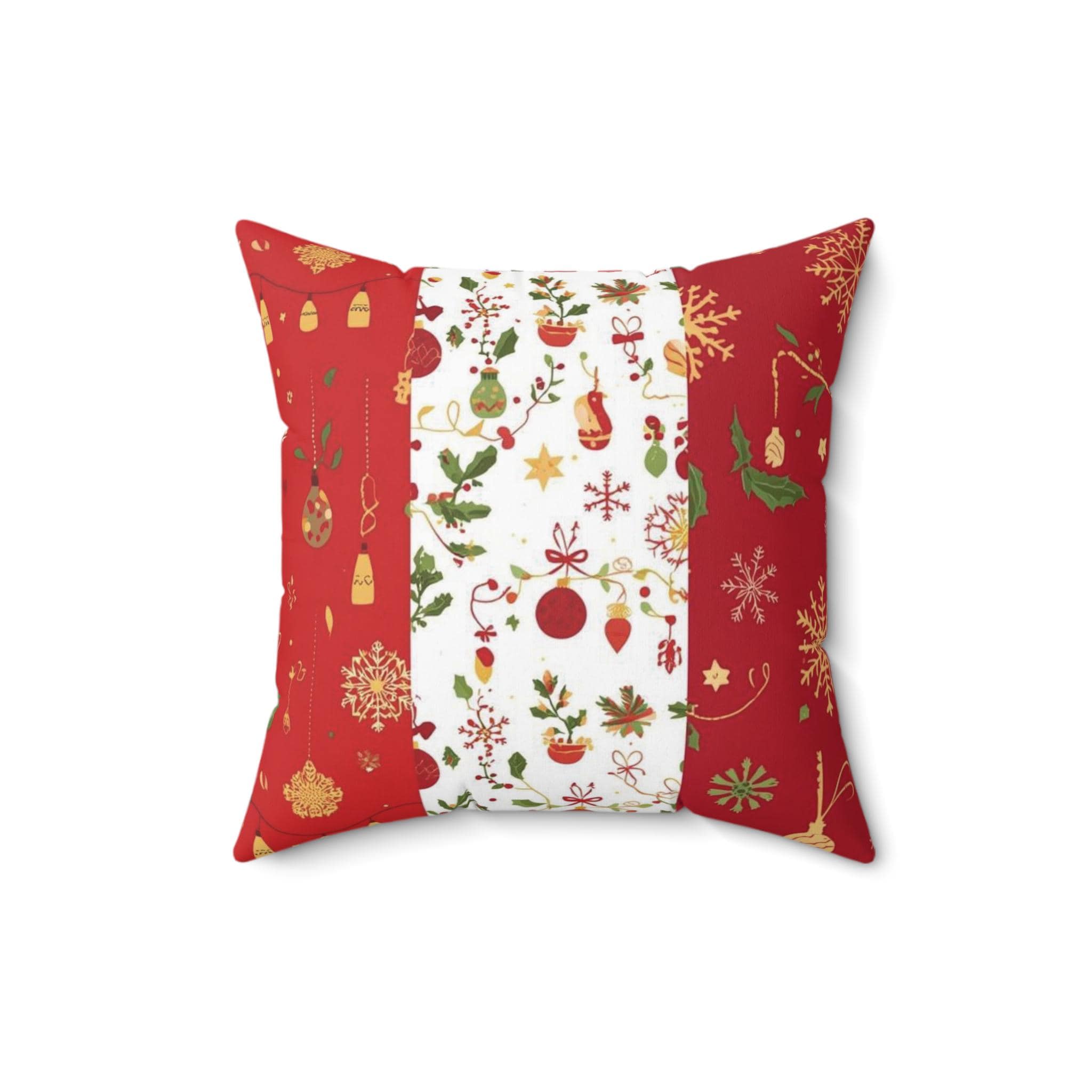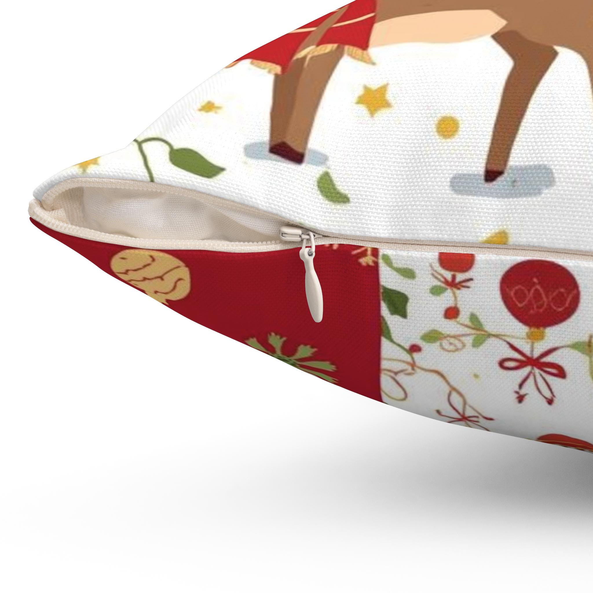 Bring a cozy, whimsical touch to holiday spaces with this spun polyester square pillow. Cheerful reindeer, tiny ornaments, and delicate snowflakes wrap around a soft background, giving any couch, armchair, or bed a warm, hand-decorated feeling. The double-sided print keeps the pattern vivid from every angle. Light and resilient spun polyester holds its shape and resists wrinkles, while the included recycled polyester insert is intentionally slightly oversized so the pillow fluffs up full and plump once assembled. Tuck it into a reading nook, layer it on a sofa with textured knits, or scatter a few on a guest bed to create a festive, cottage-inspired scene that feels like home.