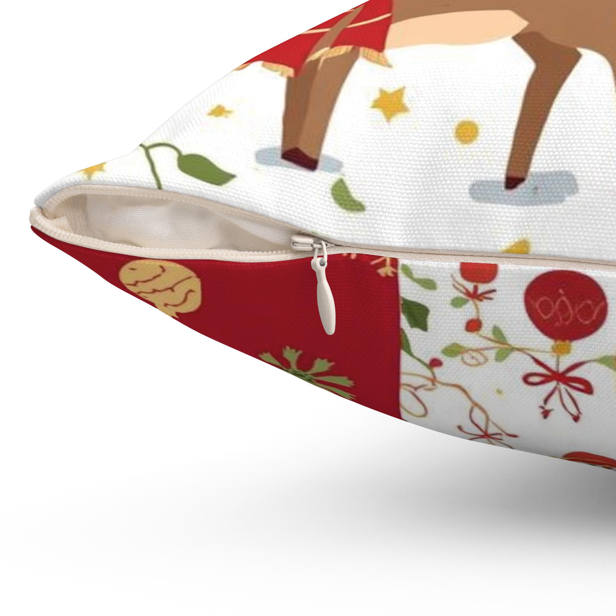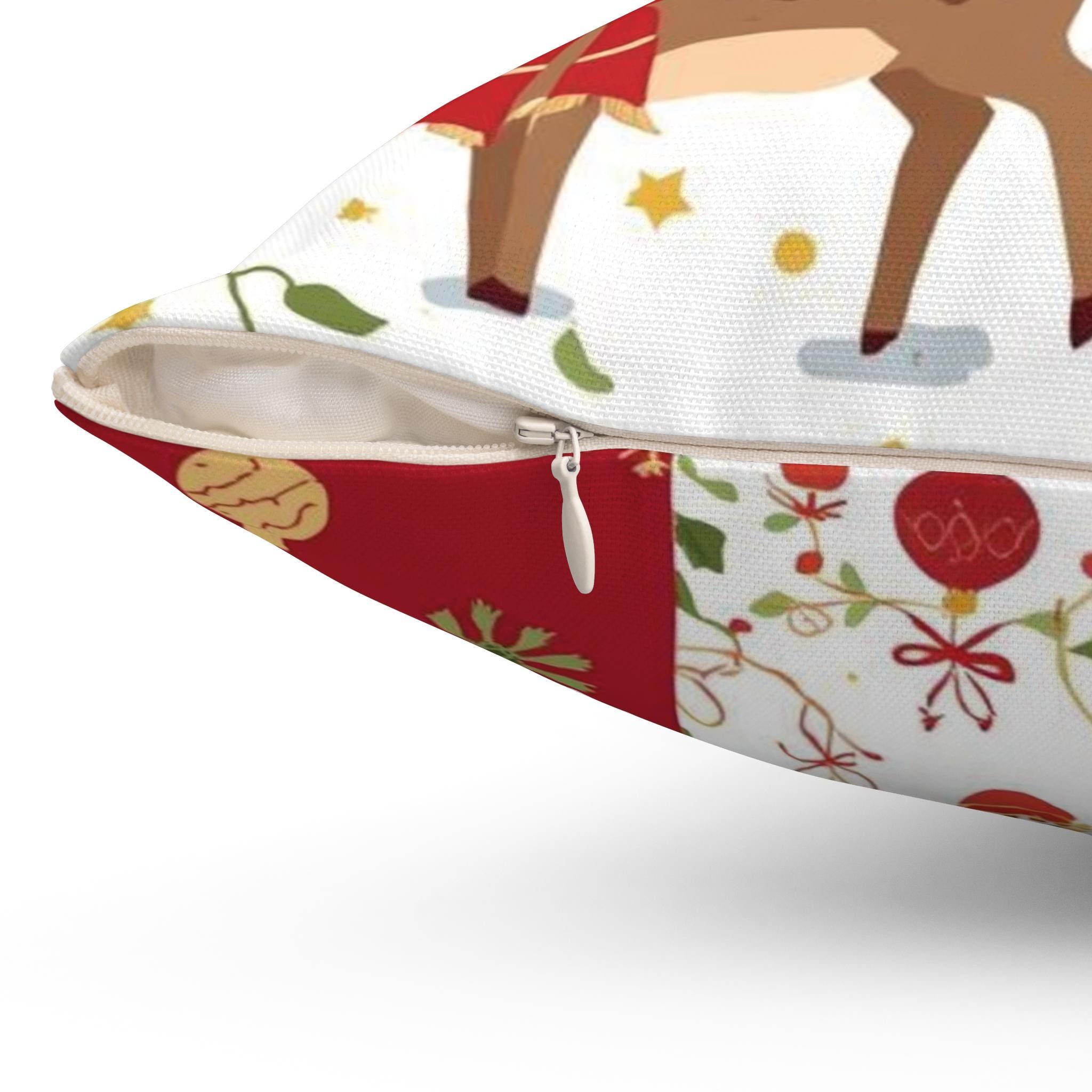 Reindeer Pattern Pillow | Christmas Decorative Throw Pillow, Holiday Snowflakes