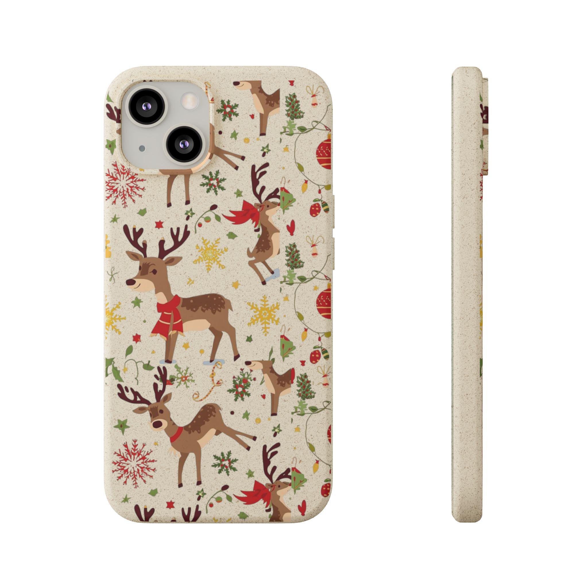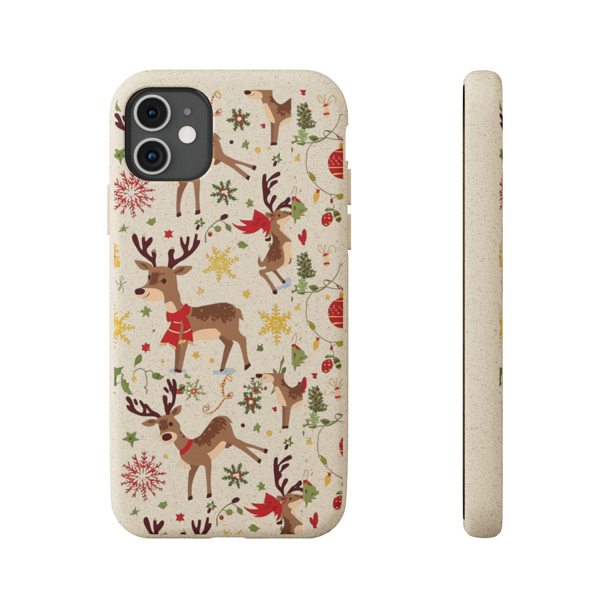 Reindeer Pattern Phone Case | Biodegradable Holiday iPhone Cover