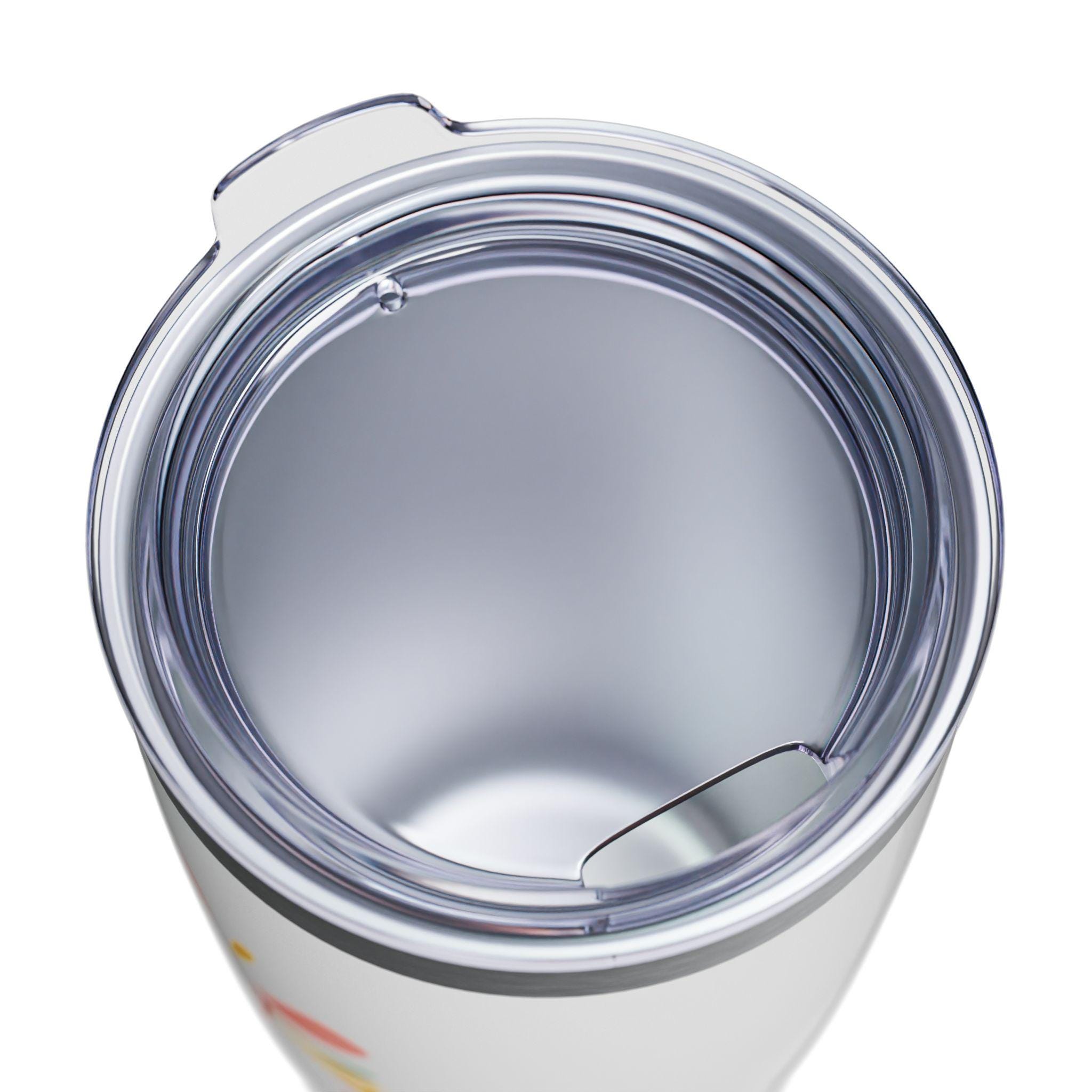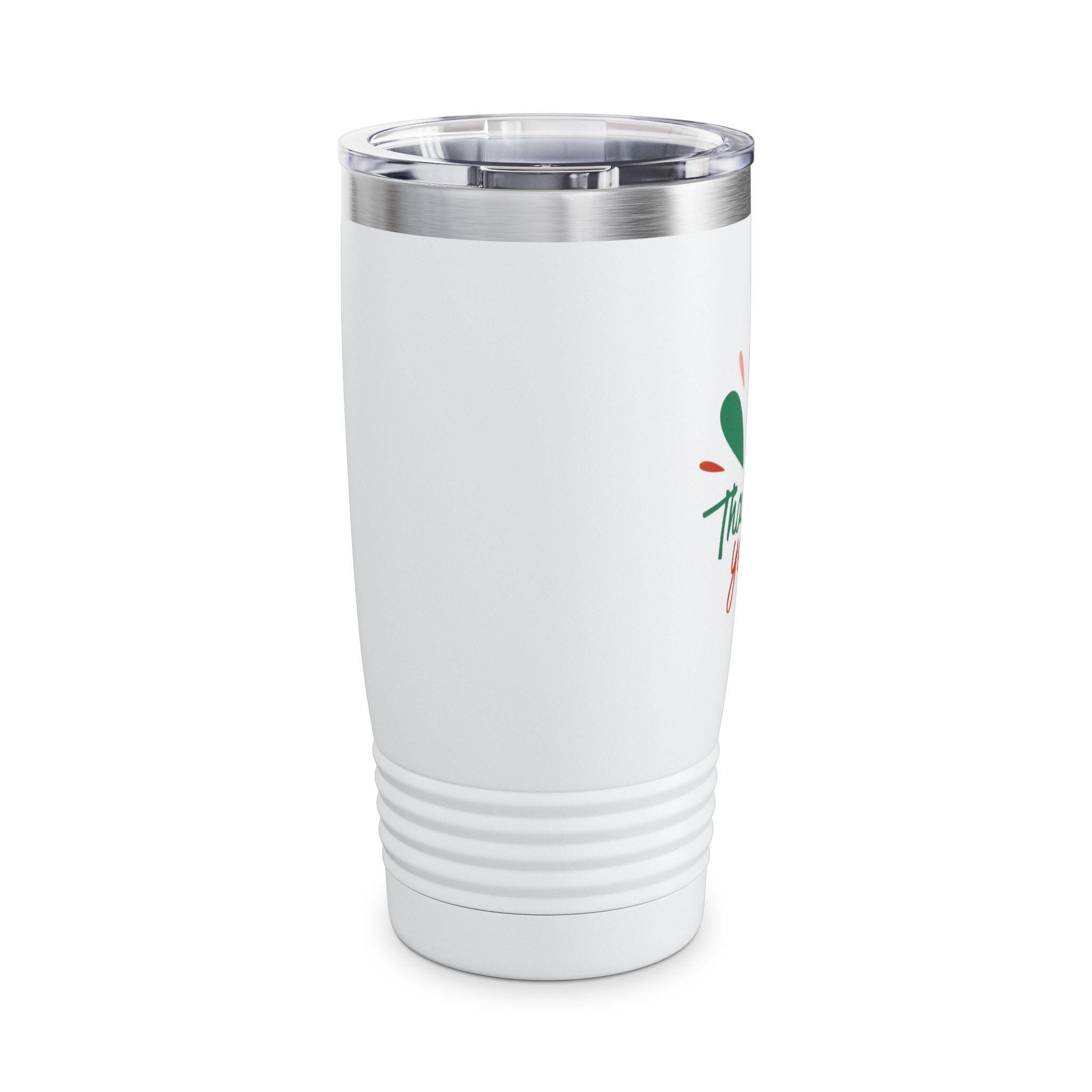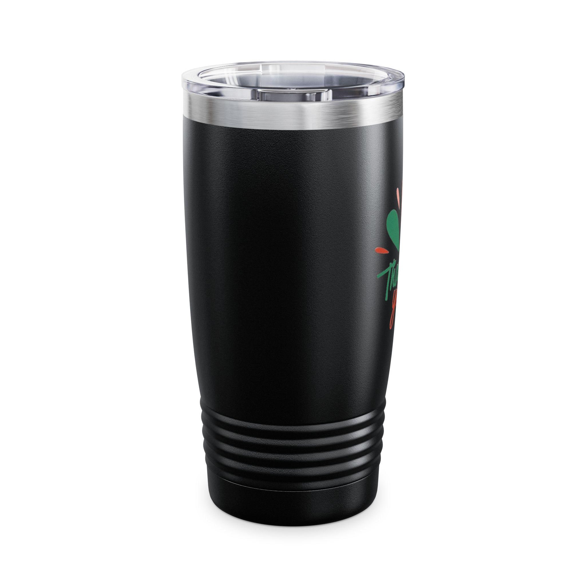 This 20oz ringneck tumbler brings bright, joyful energy to everyday sipping. The slim, stainless-steel double-wall keeps coffee hot for up to 12 hours and iced drinks cold for up to 24, while the ribbed base gives a confident grip whether you're commuting, crafting, or hosting. A clear push-on lid lets you sip easily without losing the view of the glossy, vibrant print — a cheerful “Thank you!” motif in warm, hand-drawn colors that pops against the smooth finish. Lightweight and easy to carry, it slips into cup holders and backpacks and becomes a small, sunny reminder to pause and appreciate the little moments.