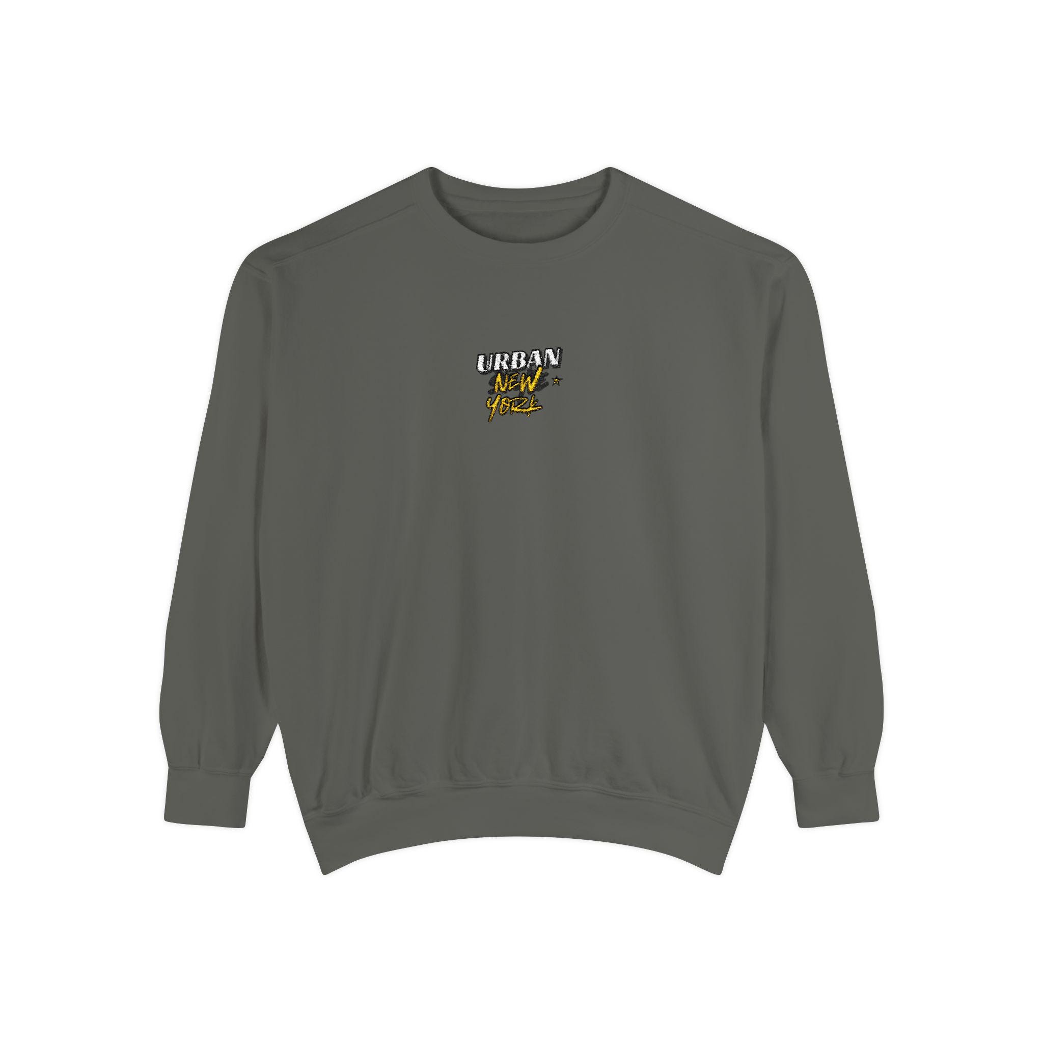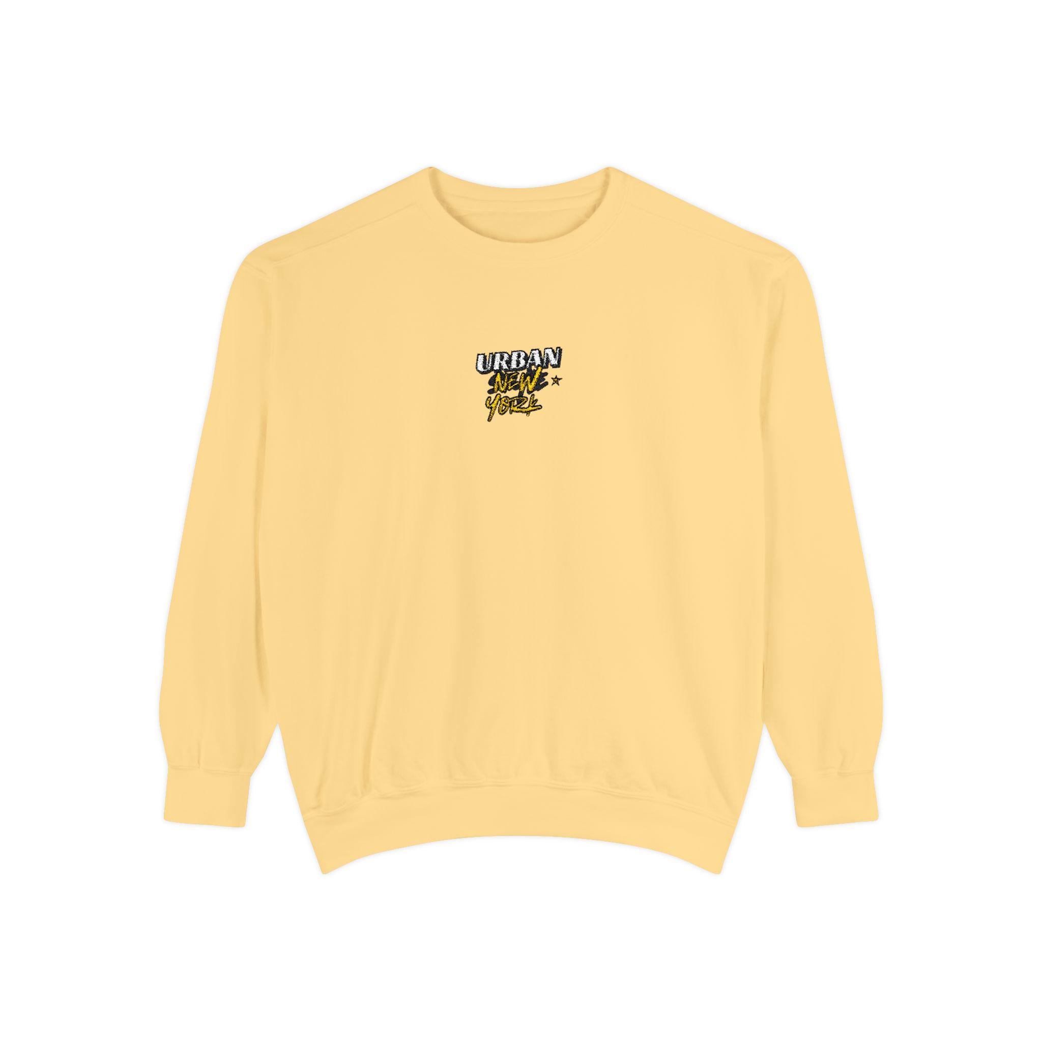 This relaxed-fit sweatshirt feels like a slow Sunday morning — soft, slightly substantial, and designed to age into your favorite layer. The garment-dyed fabric has a subtle, lived-in look and a plush hand from ring-spun cotton blended with polyester. Small embroidered artwork sits on the chest for a low-profile, handcrafted touch that reads like a quiet statement rather than loud branding. Thoughtful details — ribbed collar, cuffs and hem that stretch then return, a half-moon back neck patch, and a sewn-in twill label — keep the shape intact and the neckline comfortable. OEKO-TEX certified low-impact dyes give the piece gentle color without harsh chemicals, and the medium-heavy weight gives it cozy structure for cooler mornings, studio nights, and casual outings with friends.
