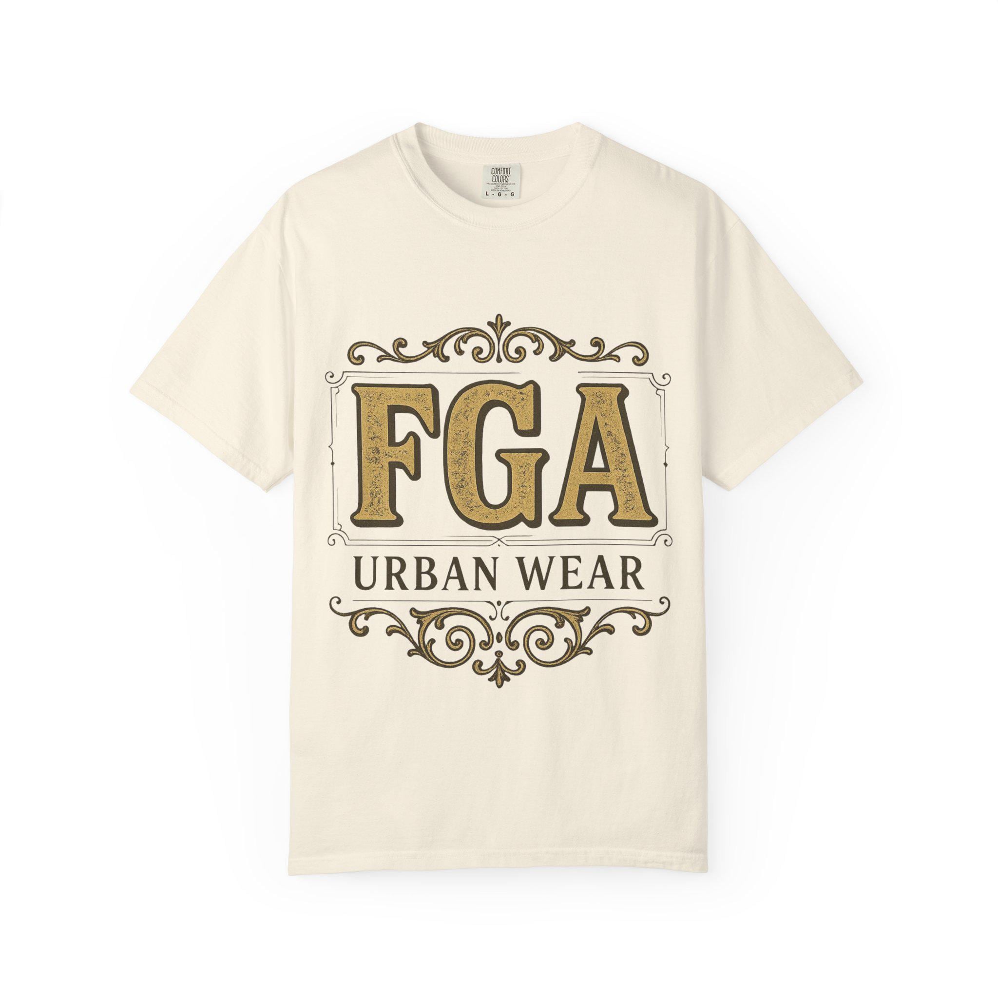 This relaxed-fit tee channels an old-school urban vibe with bold, vintage-inspired lettering and ornate scrollwork. The central “FGA” emblem sits in a distressed gold tone, framed by decorative flourishes and the understated “Urban Wear” tag beneath — a graphic that feels like a reclaimed signboard from a city block. Wear it layered under a denim jacket or alone on warm afternoons; the garment-dyed cotton and timeless print age softly with you, becoming more lived-in over time. It brings quiet confidence to street walks, coffee runs, and evenings with friends, pairing easily with jeans or joggers while keeping comfort front and center.