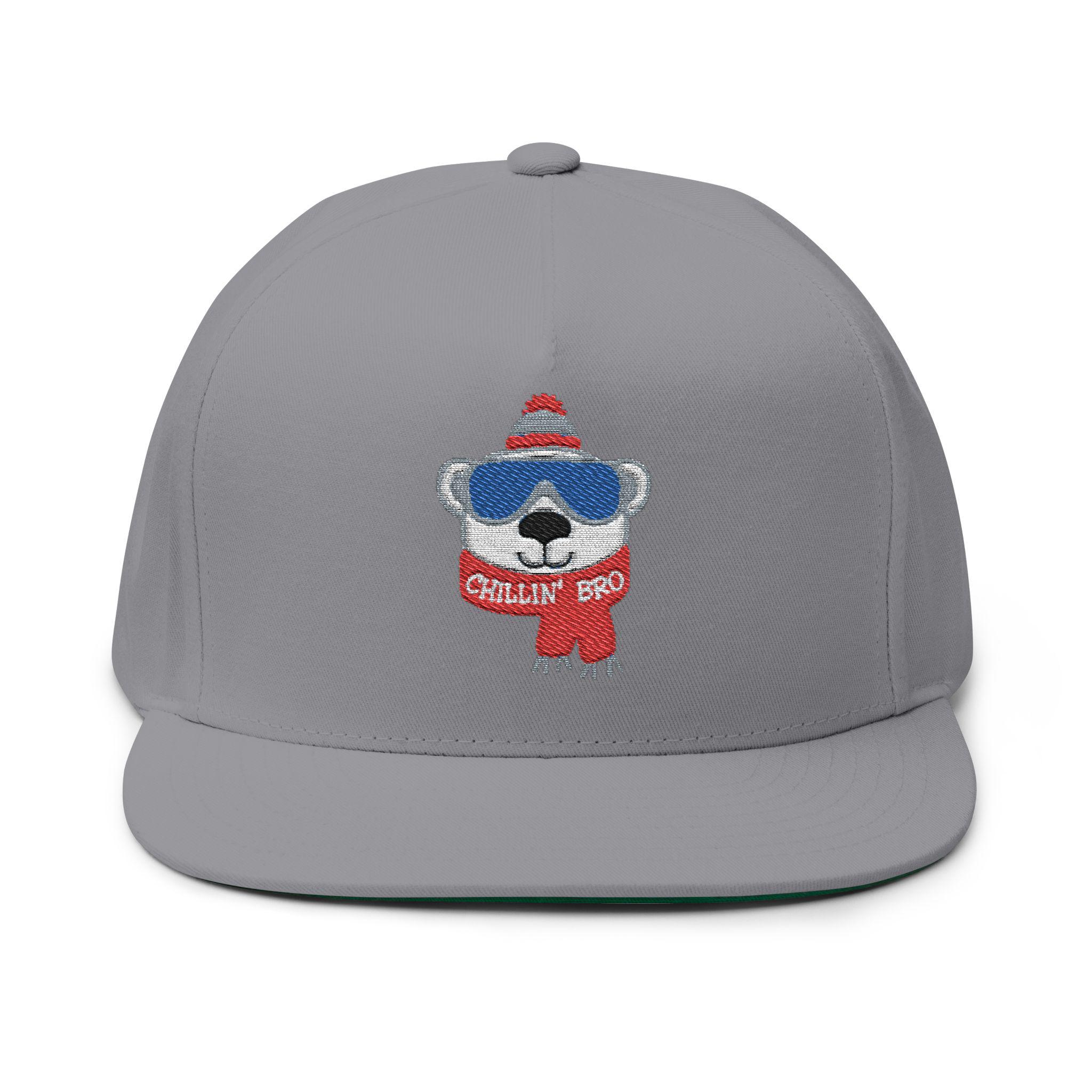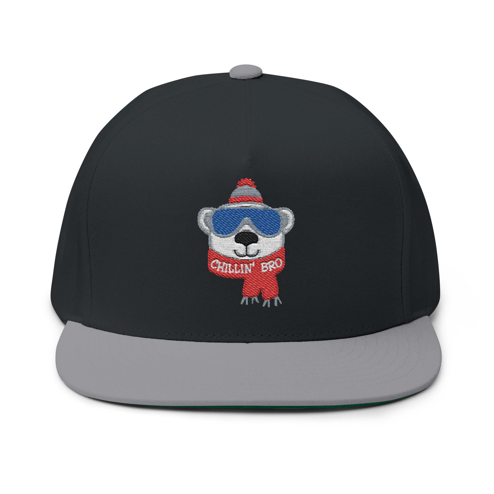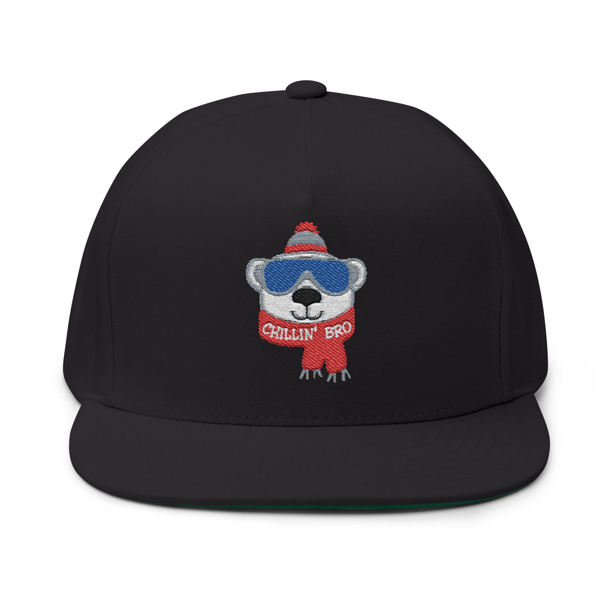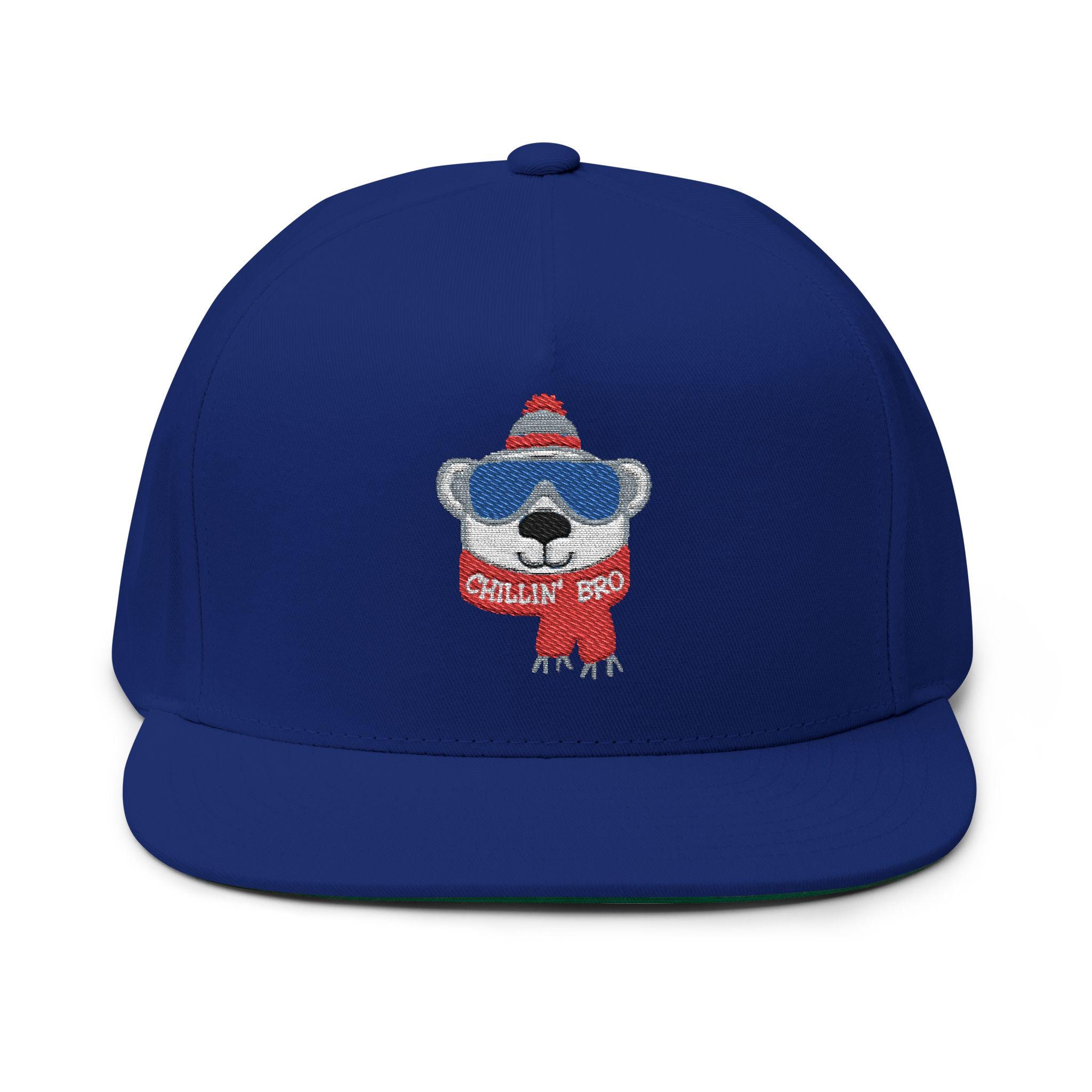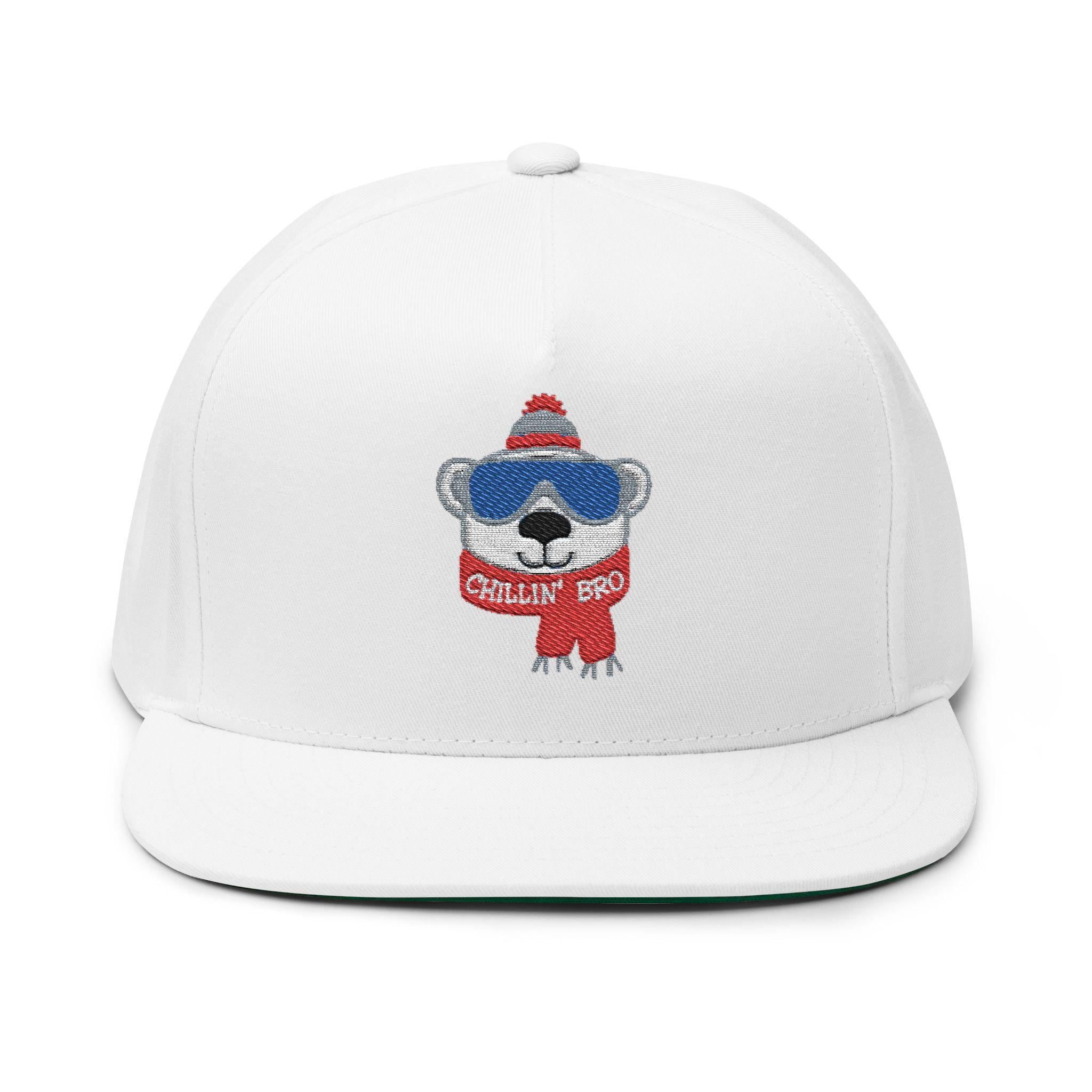 Chillin' Bro Bear Embroidered Flat Bill Cap | Winter Beanie Scarf Patch