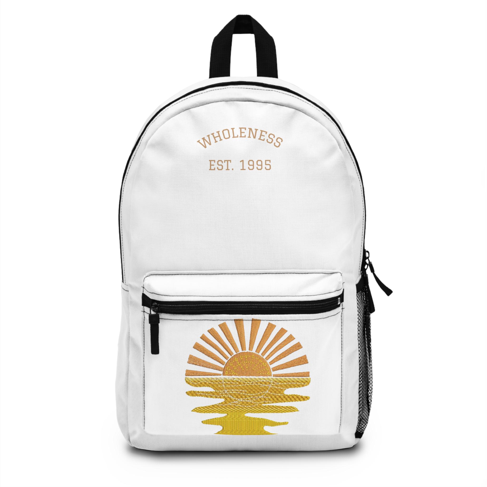 Carry a slice of warm morning light with you. This backpack pairs a clean, durable silhouette with a sun-and-water graphic that feels like a quiet beach sunrise. Lightweight polyester and a ventilated padded back make day-long wear easy, while multiple zip pockets keep your things organized — from laptop to water bottle. It's the sort of bag you grab for city commutes, coastal walks, or weekend classes, when you want functional reliability and a touch of calm optimism in your gear.