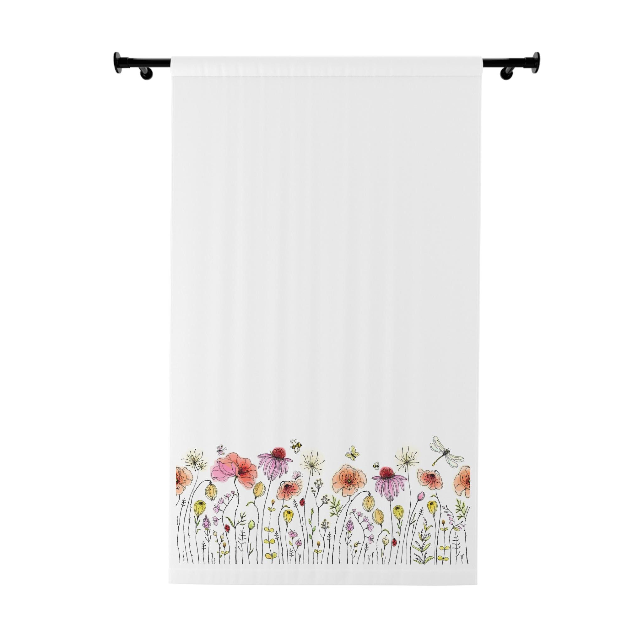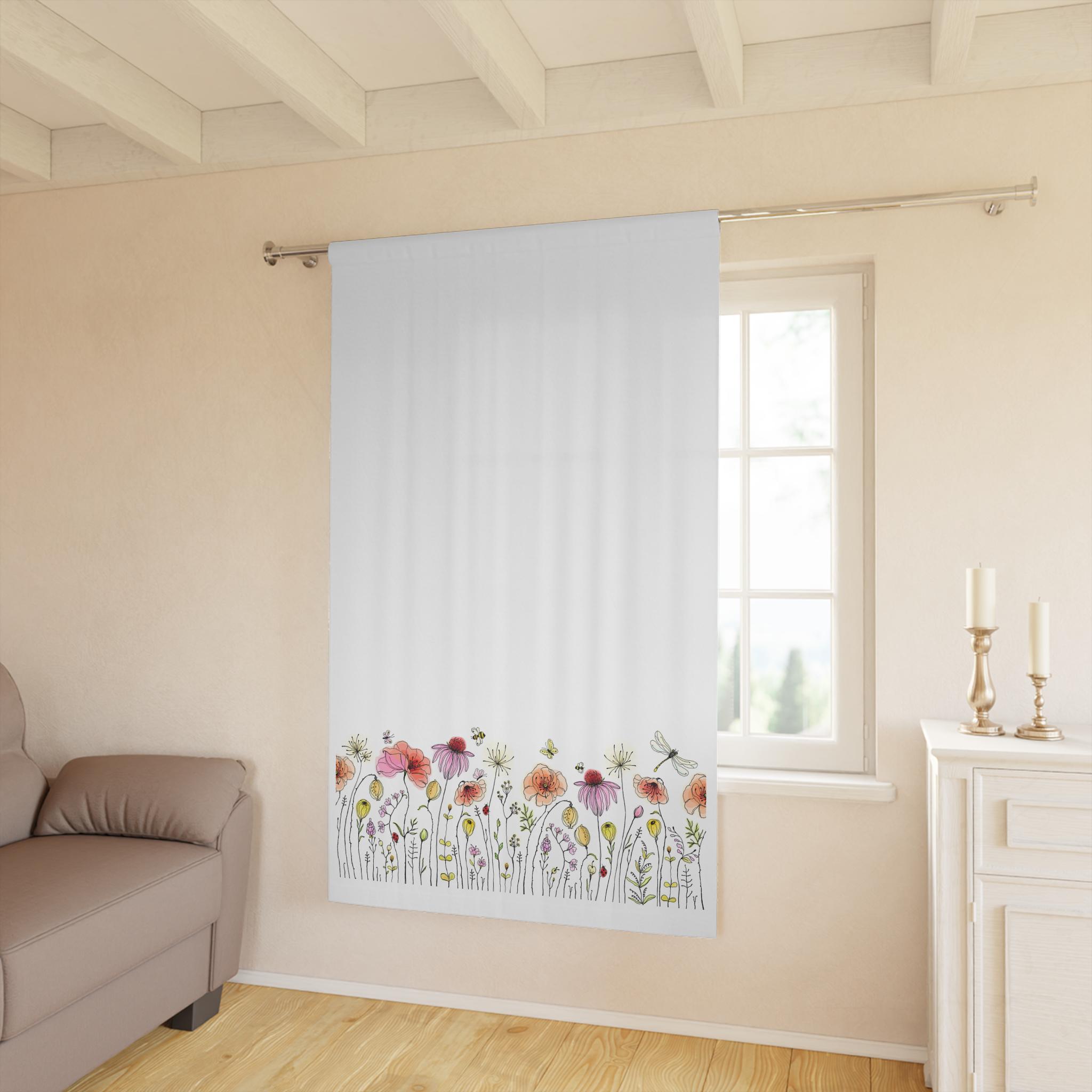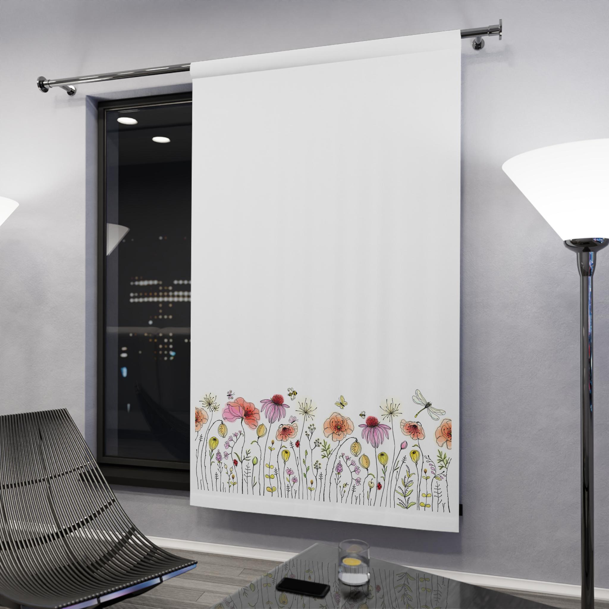 Wildflower Border Window Curtain | Floral Meadow, Dragonflies